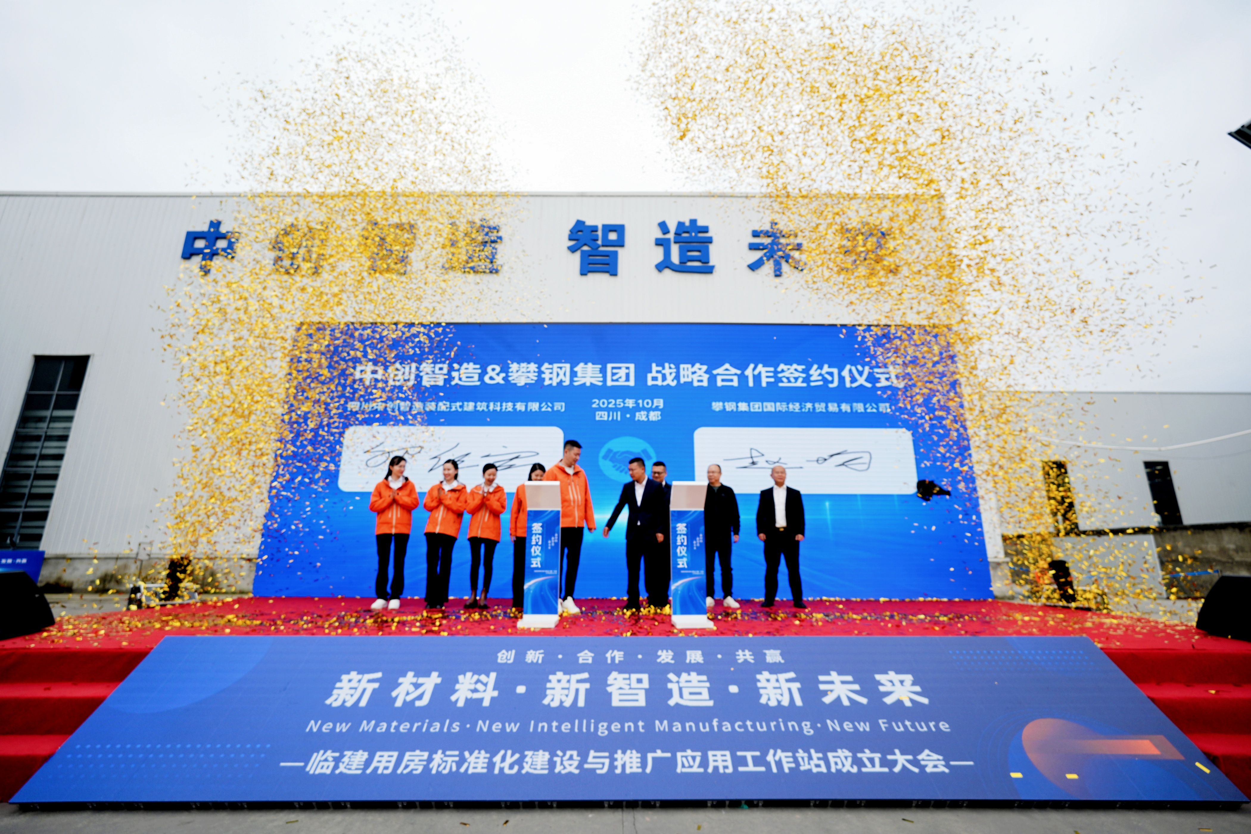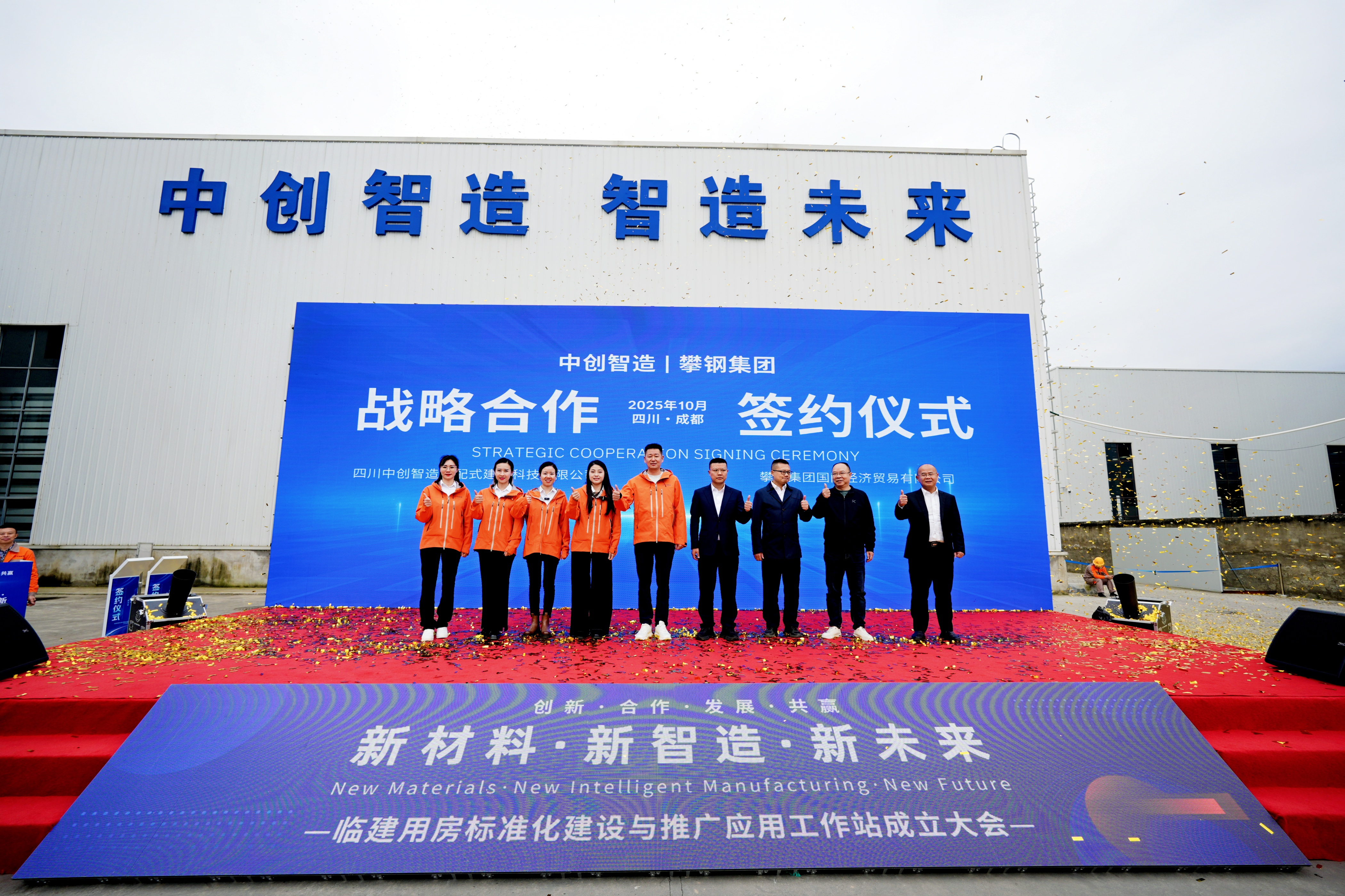 2025年10月21日,四川中創(chuàng)智造裝配式建筑科技有限公司(以下簡稱“中創(chuàng)智造”)與攀鋼集團國際經濟貿易有限公司 (以下簡稱“攀鋼集團”)戰(zhàn)略合作簽約儀式在大邑縣中創(chuàng)智造總部隆重舉行。標志著雙方合作邁入了全新的戰(zhàn)略發(fā)展階段。